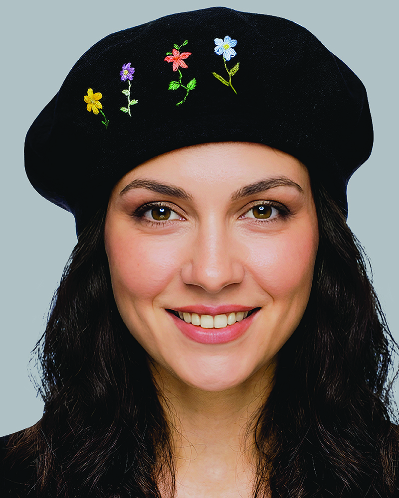 This design bridges the gap between classic sophistication and whimsical charm. It reimagines the traditional, authoritative silhouette of the black beret by introducing delicate, hand-style botanical embroidery. The concept is “Nature in the City”—bringing a touch of the meadow to urban fashion. It is designed not just as headwear, but as a mood lifter, intended to bring a sense of joy and playfulness to the wearer while maintaining a chic, versatile aesthetic that pairs as easily with a school uniform as it does with a trench coat.