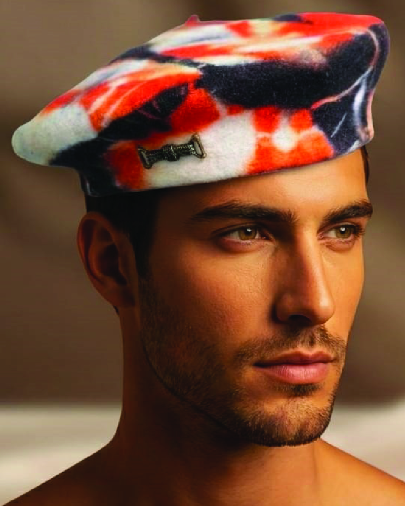 Product Concept: “Elemental Rebellion” The concept is built around the raw energy of fire and transformation. By applying a chaotic tie-dye technique to the structured, classic form of a beret, this piece represents a “rebellion” against traditional, solid-colored headwear. It is designed for the bold individual who views fashion as a form of armor and personal heat.