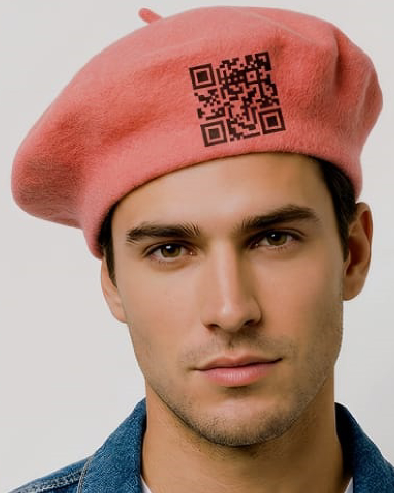 This is not just a beret; it is a conversation starter and a walking landing page. Designed for brand ambassadors, exhibition teams, and forward-thinking companies, it allows the wearer to bridge the physical gap between an in-person greeting and a digital relationship. A simple scan transfers the onlooker instantly to a portfolio, a contact card, or a brand story, making it the ultimate tool for “Phygital” (Physical + Digital) marketing.